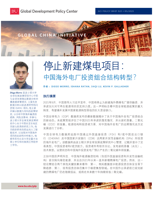 【波士顿大学全球发展政策研究中心】【2025】停止新建煤电项目:中国海外电厂投资组合结构转型?-20页