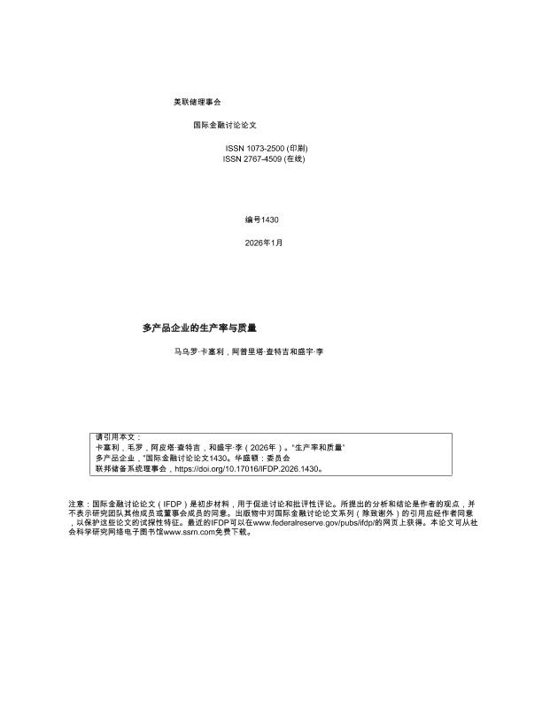 【美联储理事会】【202601】多产品企业的生产率与质量-66页