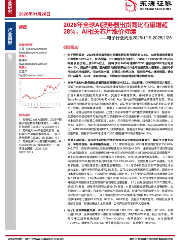 【东海证券】【202601】2026年全球AI服务器出货同比有望增超 28%,A I相关芯片涨价持续-15页