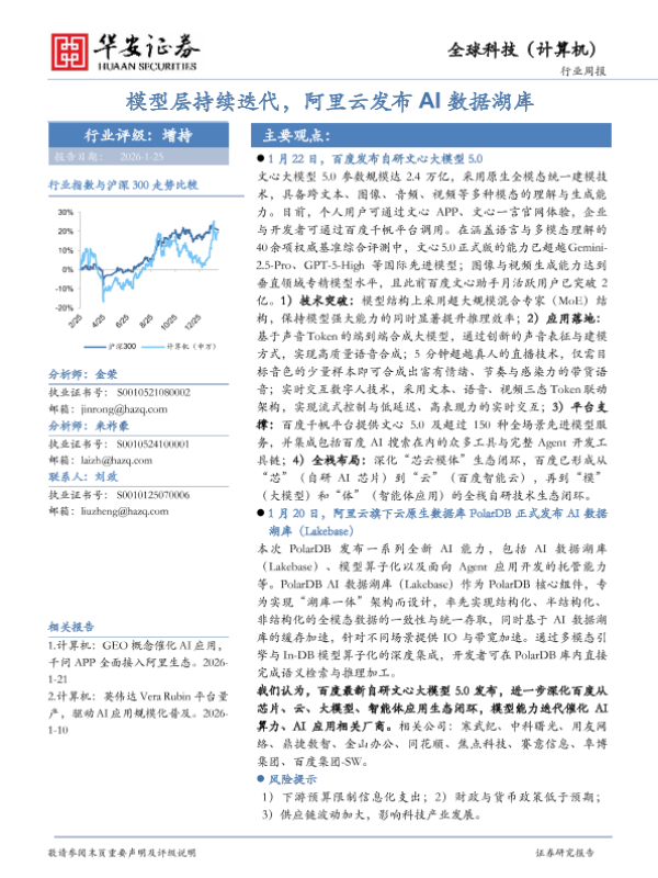 【华安证券】【202601】全球科技(计算机)行业周报:模型层持续迭代,阿里云发布AI数据湖库-13页