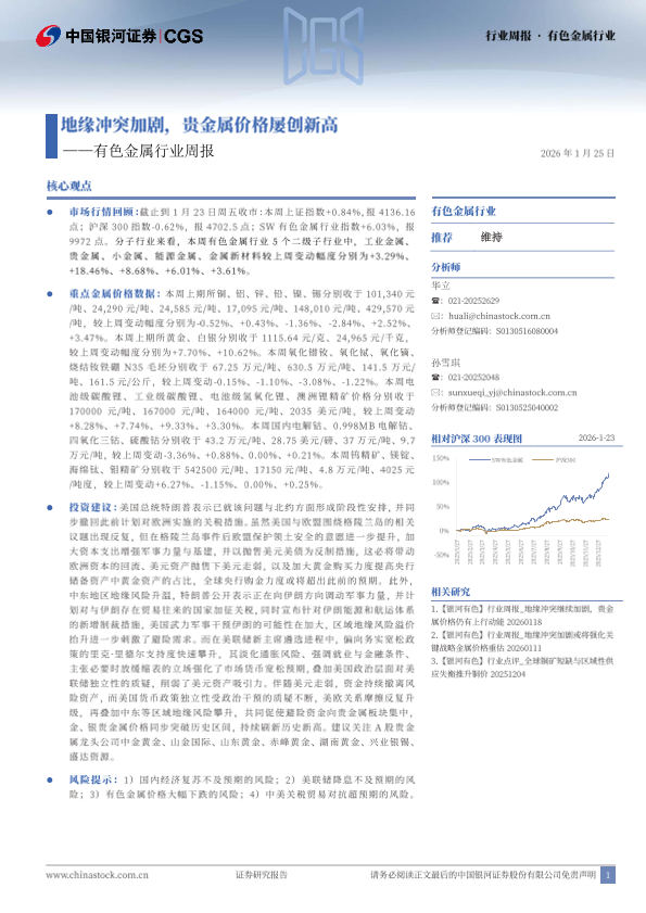 【银河证券】【202601】中国银河_有色金属行业周报:地缘冲突加剧,贵金属价格屡创新高-21页