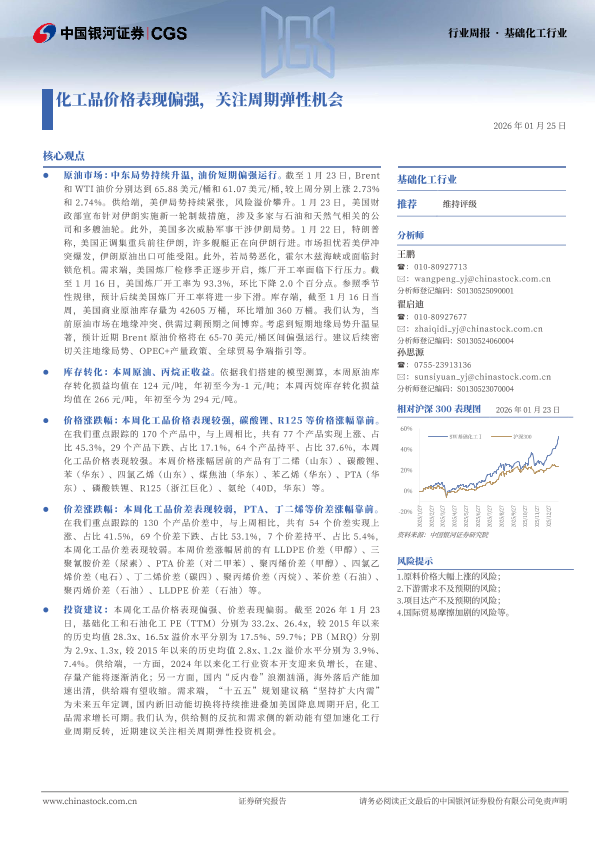 【银河证券】【202601】基础化工行业:化工品价格表现偏强,关注周期弹性机会-20页
