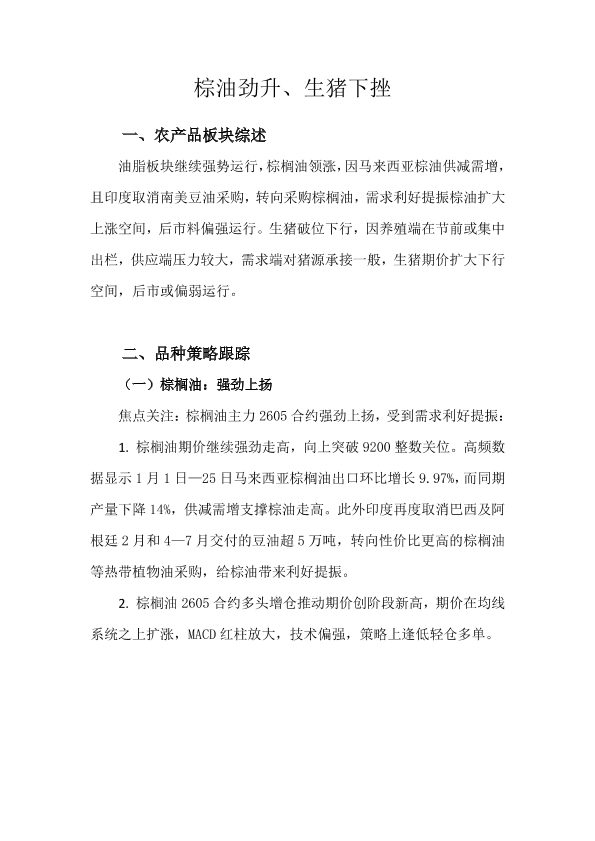 【天富期货有限公司】【202601】棕油劲升、生猪下挫-8页