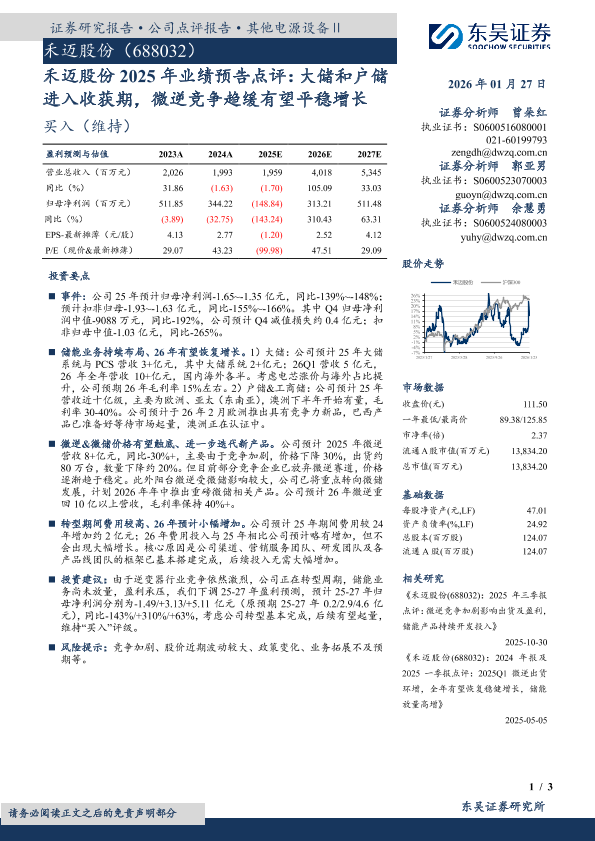 【东吴证券】【202601】禾迈股份2025年业绩预告点评:大储和户储进入收获期,微逆竞争趋缓有望平稳增长-3页