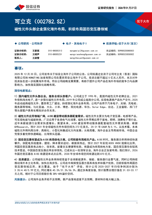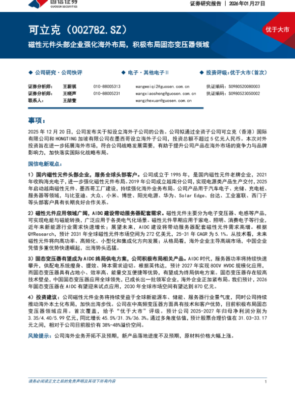 【国信证券】【202501】磁性元件头部企业强化海外布局,积极布局固态变压器领域-23页