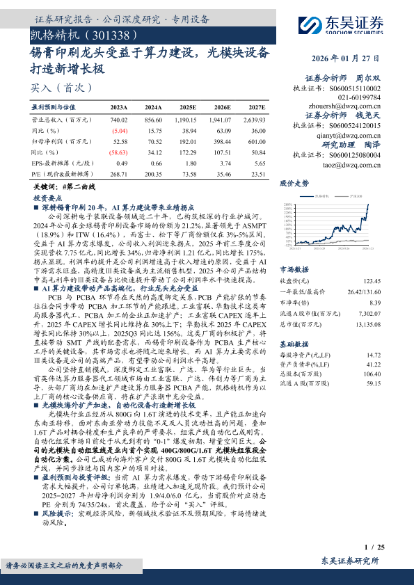 【东吴证券】【202601】锡膏印刷龙头受益于算力建设,光模块设备打造新增长极-25页
