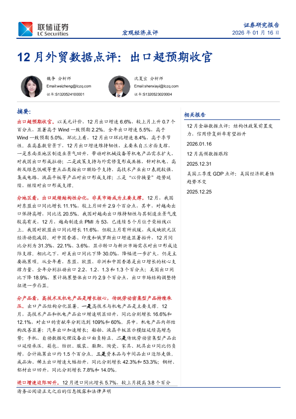 【联储证券】【202601】12月外贸数据点评:出口超预期收官-10页