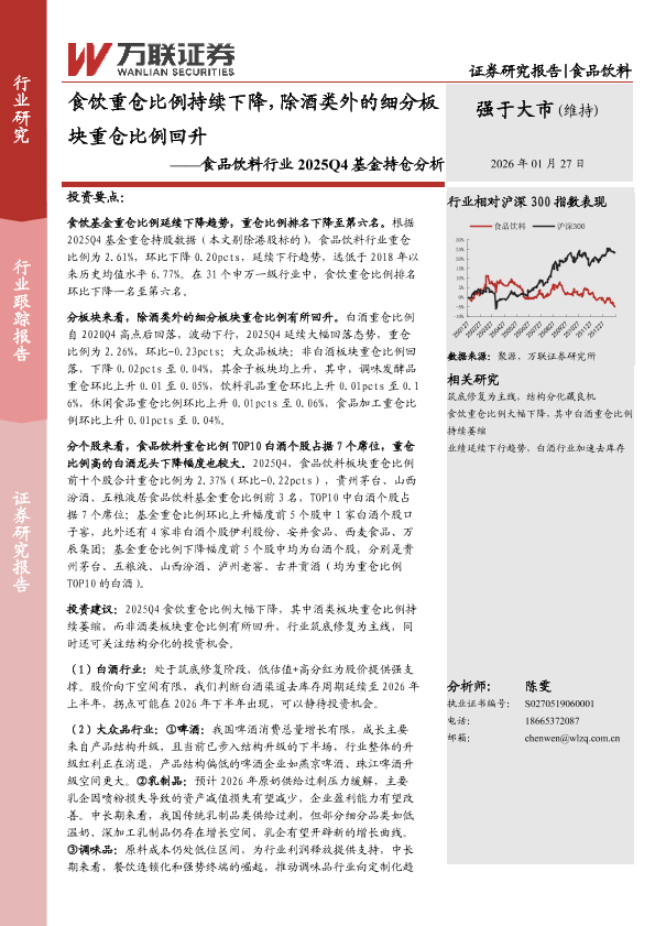 【万联证券】【2026】食饮重仓比例持续下降,除酒类外的细分板块重仓比例回升-9页