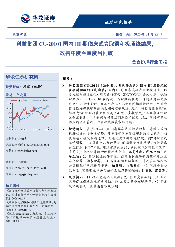 【华龙证券】【202601】科笛集团CU-20101国内III期临床试验取得积极顶线结果,改善中度至重度眉间纹-9页