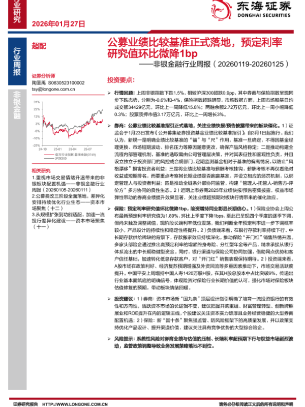 【东海证券】【202601】公募业绩比较基准正式落地,预定利率研究值环比微降1bp——非银金融行业周报(20260119-20260125)-9页
