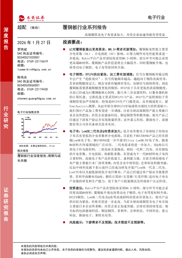 【东莞证券】【202601】覆铜板行业系列报告:高端铜箔及电子布需求加大,内资企业加速突破有望受益-17页