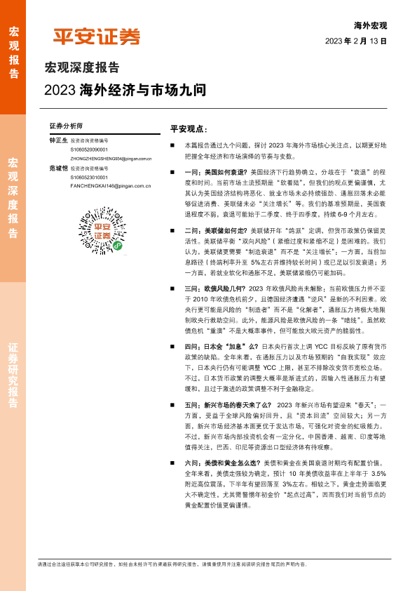 【平安证券】【20230213】2023海外经济与市场九问-28页