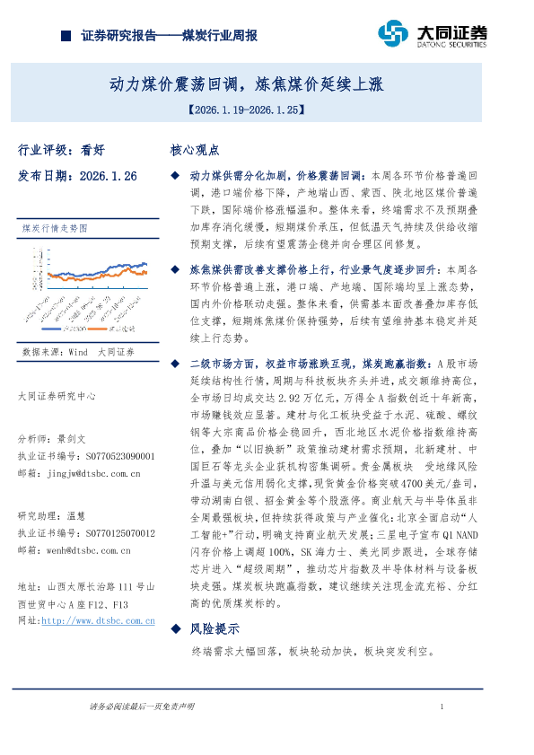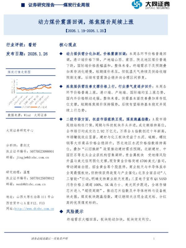 【大同证券研究中心】【202601】证券研究报告——煤炭行业周报-14页