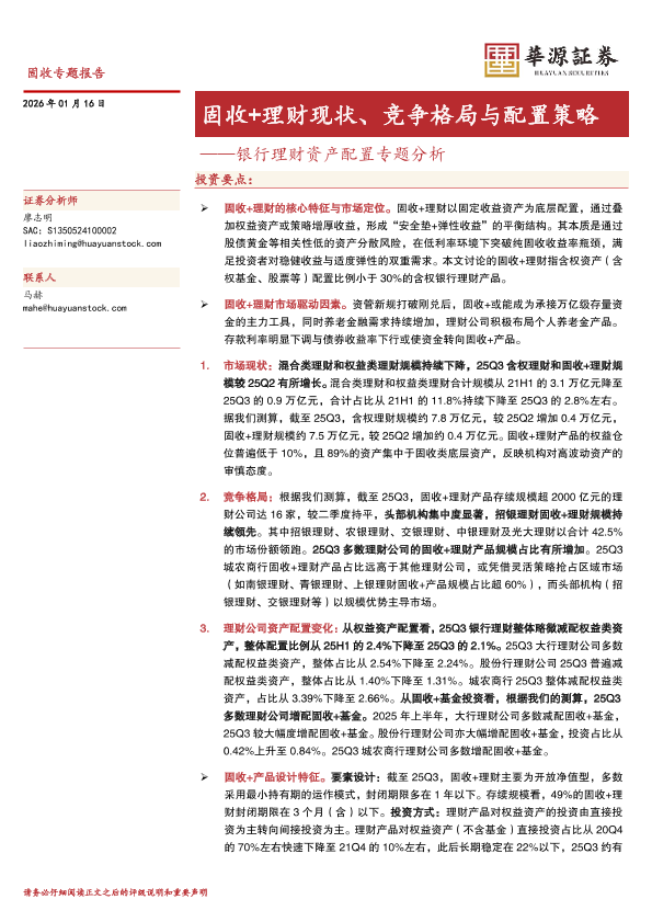 【华源证券】【202601】固收+理财现状、竞争格局与配置策略——银行理财资产配置专题分析-22页