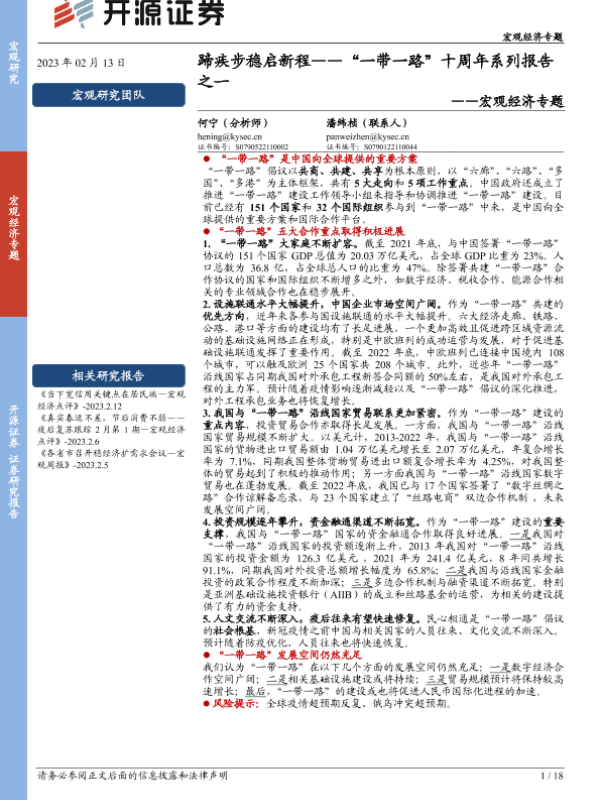 【开源证券】【20230213】蹄疾步稳启新程——“一带一路”十周年系列报告之一-18页