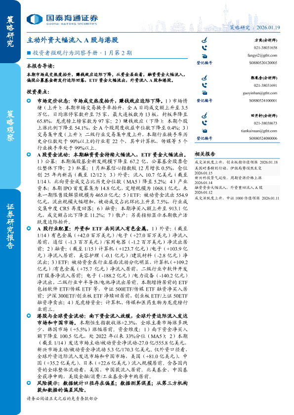 【国泰海通证券】【202601】主动外资大幅流入 A股与港股-31页