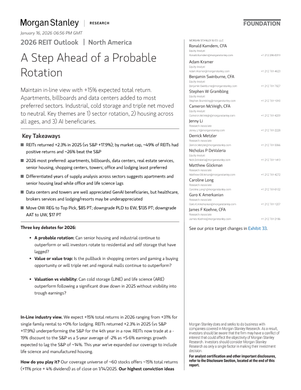 【Morgan Stanley】【2026】2026 REIT Outlook A Step Ahead of a Probable Rotation-83页