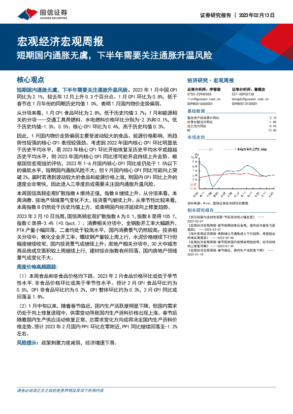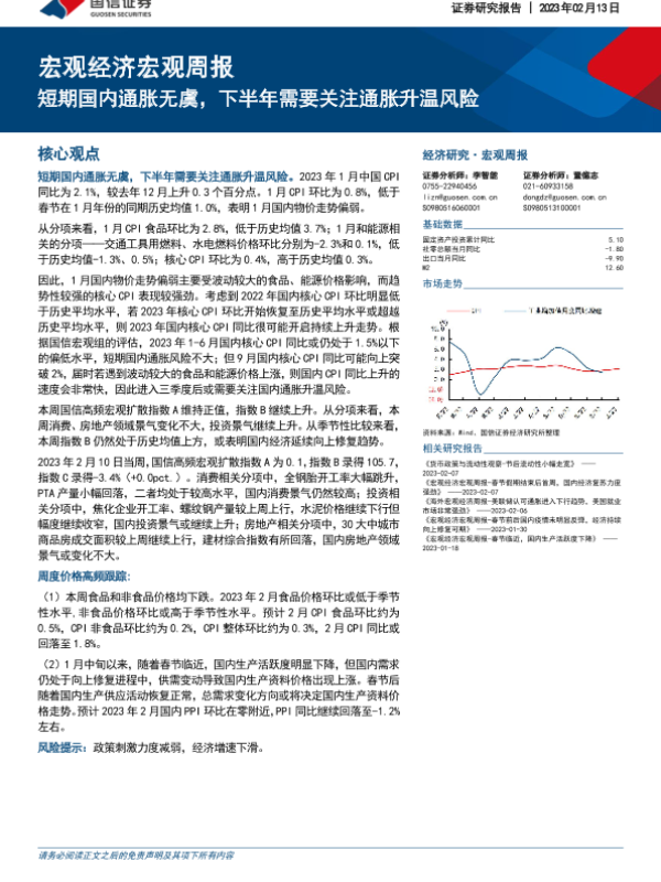 【国信证券】【20230213】宏观经济宏观周报:短期国内通胀无虞,下半年需要关注通胀升温风险-17页