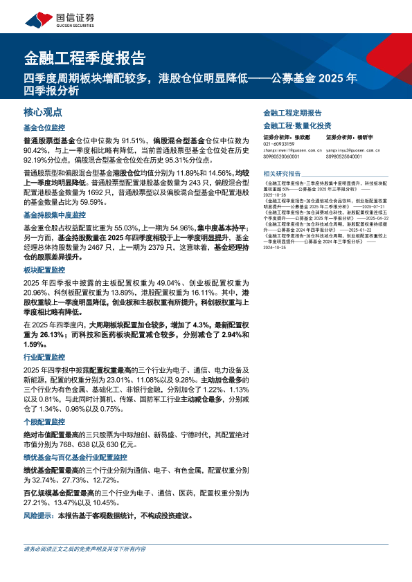 【国信证券】【202510】金融工程季度报告:四季度周期板块增配较多,港股仓位明显降低——公募基金2025年四季报分析-14页