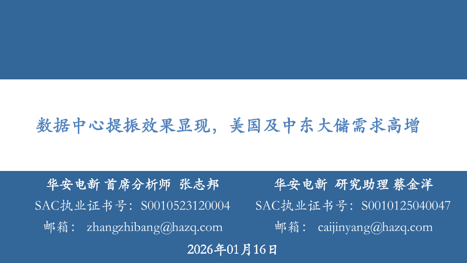 【华安证券】【202601】电新行业:数据中心提振效果显现,美国及中东大储需求高增-49页