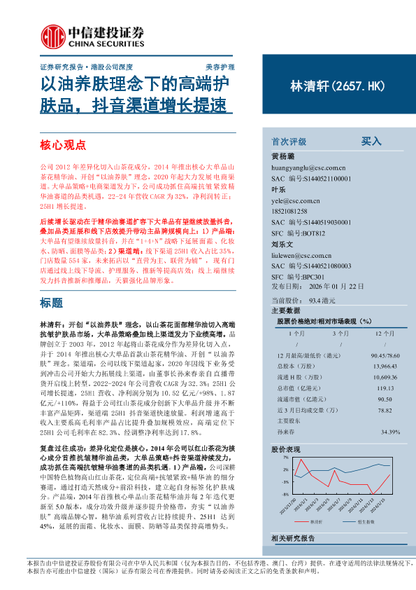 【中信建投证券】【202601】林清轩:开创“以油养肤”理念,以山茶花面部精华油切入高端抗皱护肤品市场,大单品策略叠加线上渠道发力下业绩高增。-38页