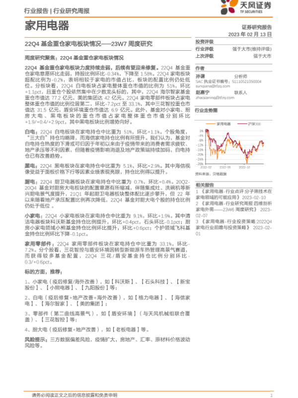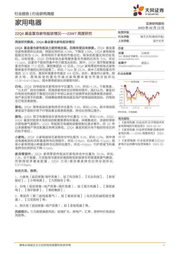 【天风证券】【20230213】家用电器23W7周度研究:22Q4基金重仓家电板块情况-18页