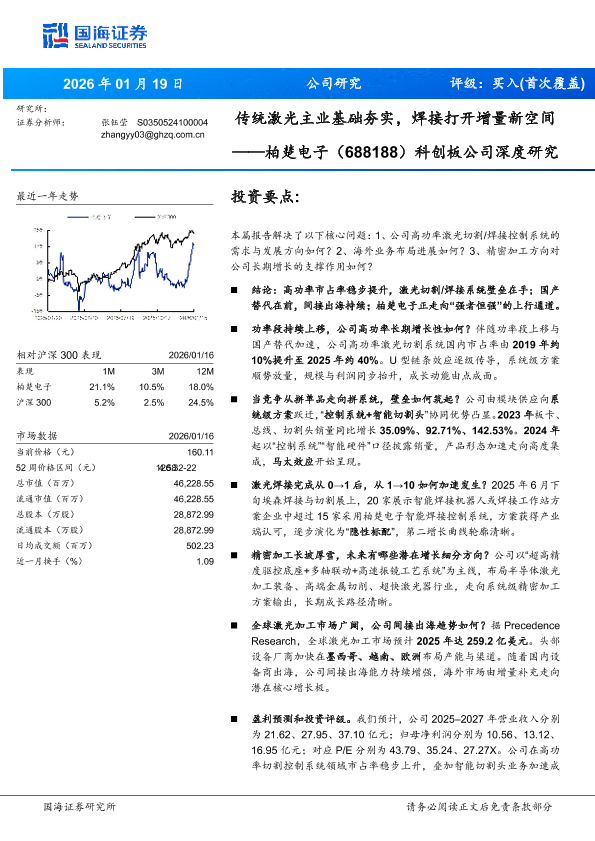 【国海证券】【202601】传统激光主业基础夯实,焊接打开增量新空间——柏楚电子(688188)科创板公司深度研究-46页
