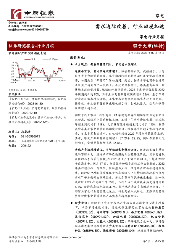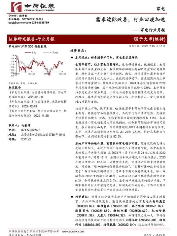 【中原证券】【20230215】家电行业月报:需求边际改善,行业回暖加速-22页