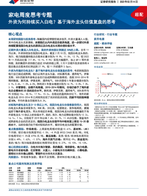 【国信证券】【20230214】家电周度思考专题:外资为何持续买入白电?基于海外龙头估值复盘的思考-15页