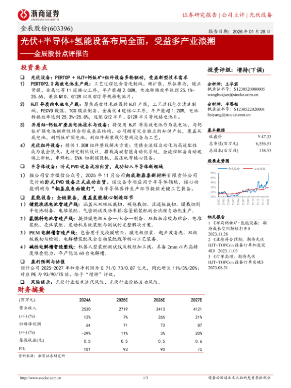 【浙商证券】【2023】光伏+半导体+氢能设备布局全面,受益多产业浪潮——金辰股份点评报告-3页