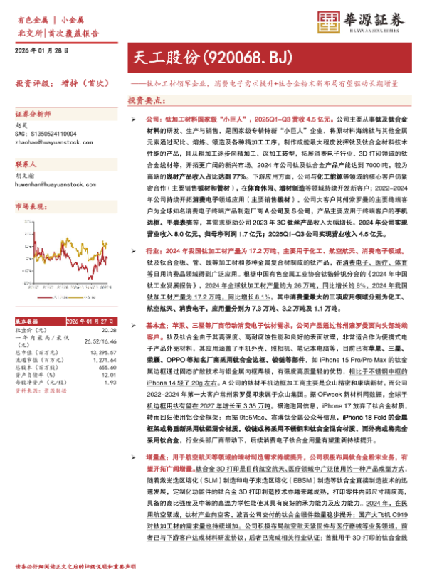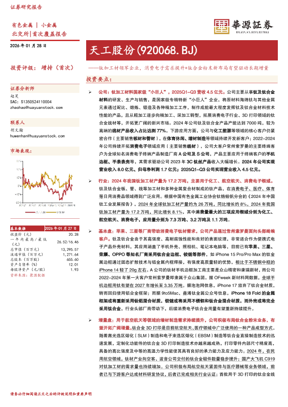 【华源证券】【202601】钛加工材领军企业_消费电子需求提升+钛合金粉末新布局有望驱动长期增量-4页
