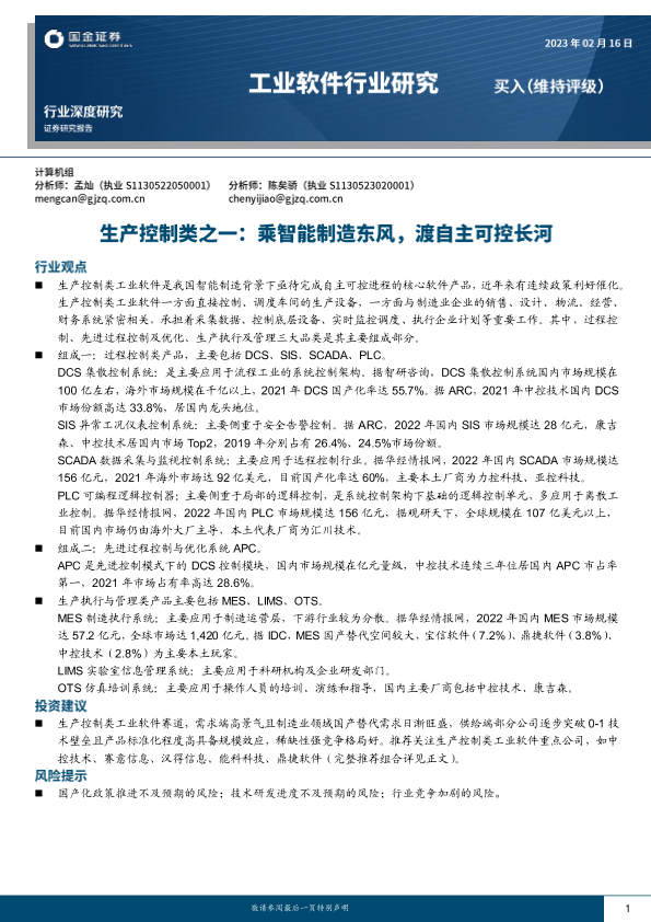 【国金证券】【20230216】工业软件行业生产控制类之一:乘智能制造东风,渡自主可控长河-25页