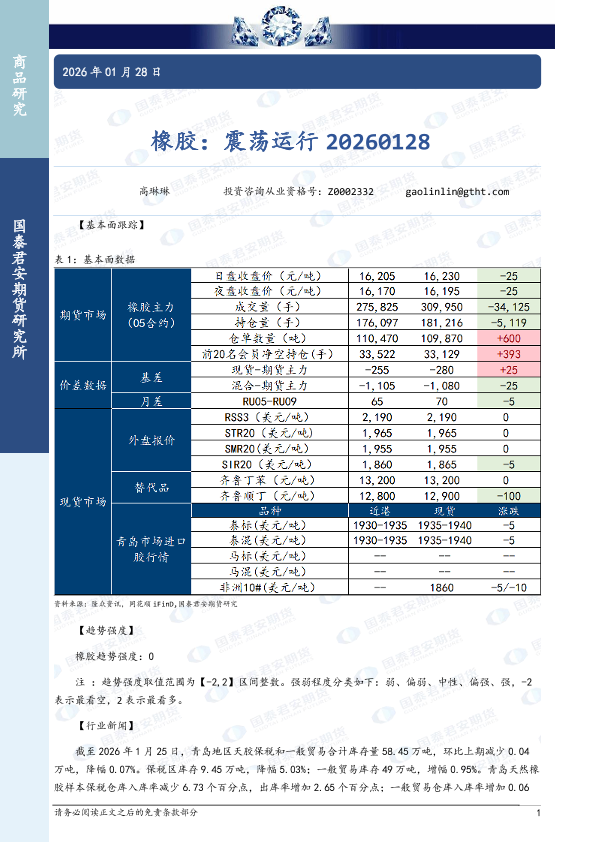 【国泰君安期货】【202601】橡胶:震荡运行-3页