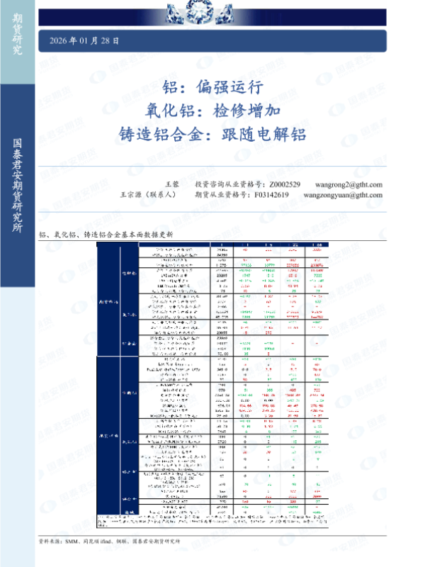 【国泰君安期货】【202601】铝:偏强运行 氧化铝:检修增加 铸造铝合金:跟随电解铝-3页
