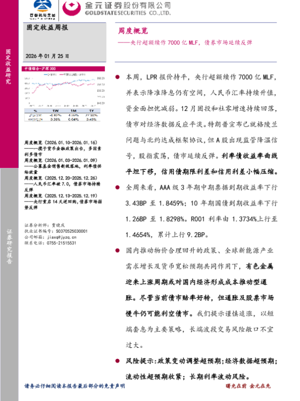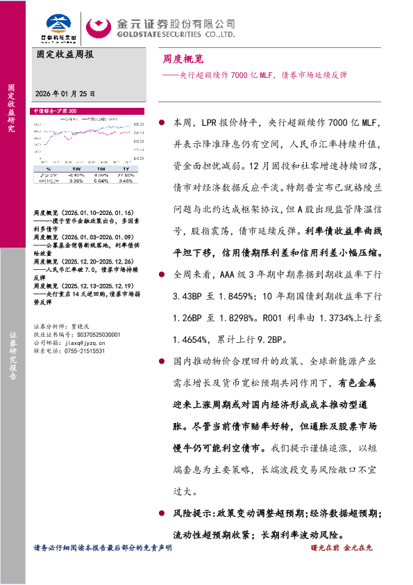 【金元证券】【202601】固定收益周报——央行超额续作7000亿MLF 债券市场延续反弹-13页