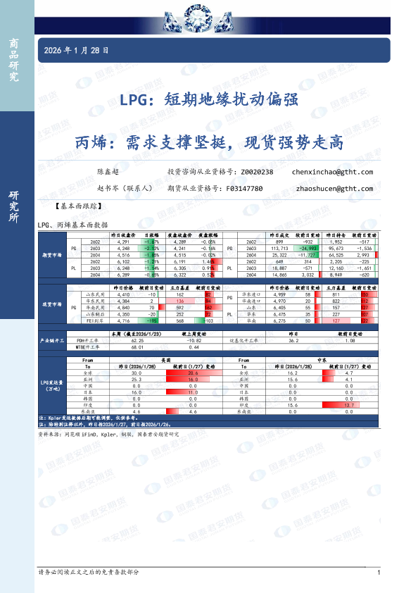 【国泰君安期货】【202601】LPG:短期地缘扰动偏强 丙烯:需求支撑坚挺,现货强势走高-4页