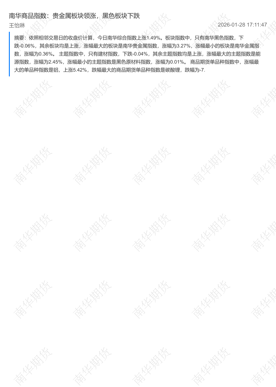 【南华期货】【202601】南华商品指数:贵金属板块领涨,黑色板块下跌-2页