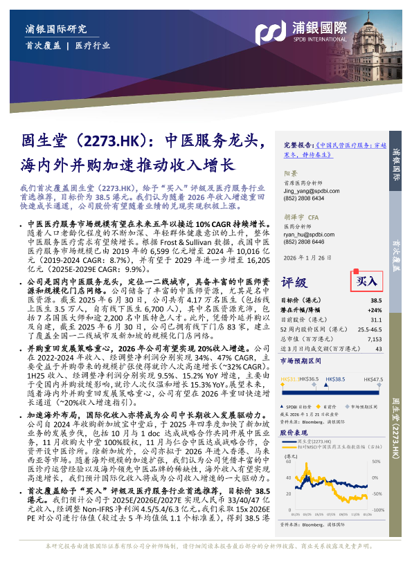 【浦银国际】【202601】固生堂(2273.HK):中医服务龙头,海内外并购加速推动收入增长-34页