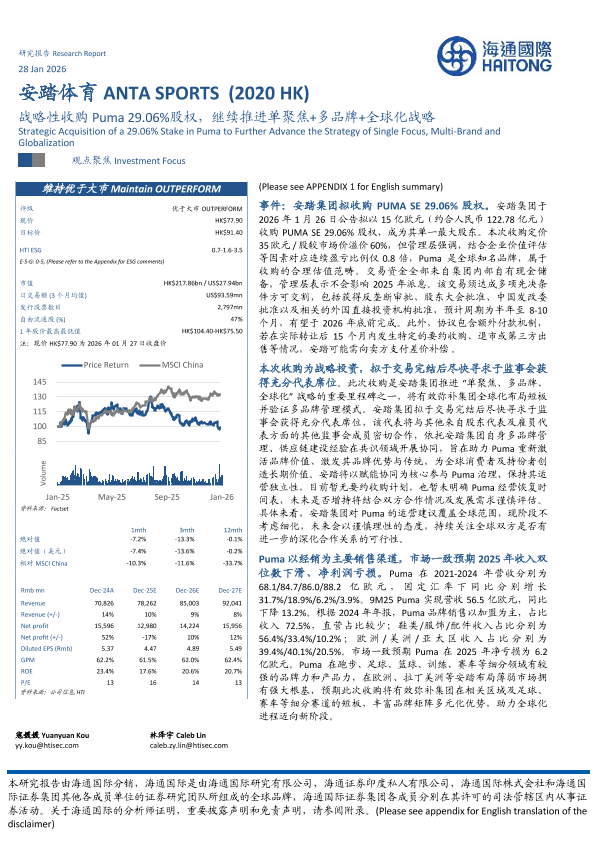 【海通国际】【202601】战略性收购 Puma 29.06%股权,继续推进单聚焦+多品牌+全球化战略-13页
