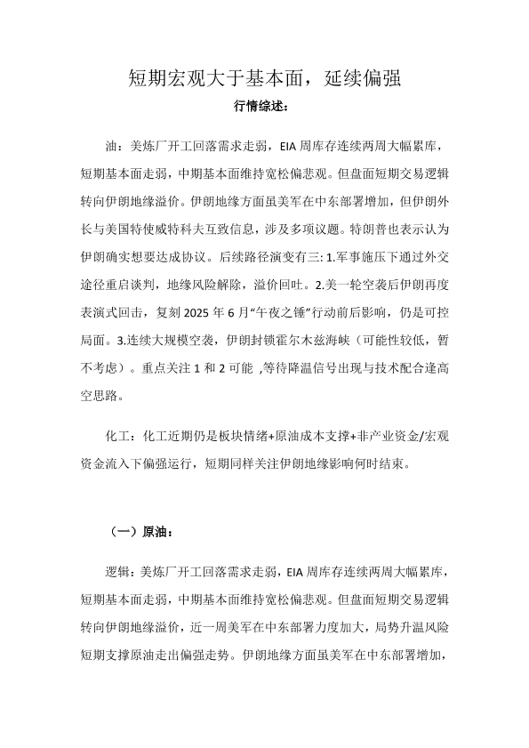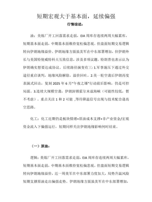 原油 化工 技术分析 成本支撑 地缘政治