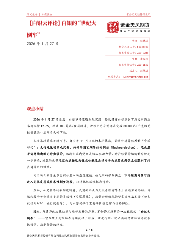 【紫金天风期货】【202601】白银的‘世纪大倒车’-6页