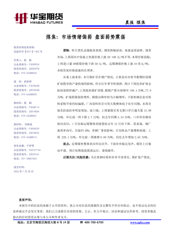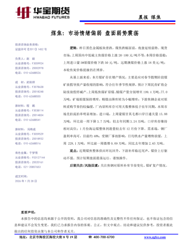 【华宝期货】【202601】煤焦_市场情绪偏弱_盘面弱势震荡-1页