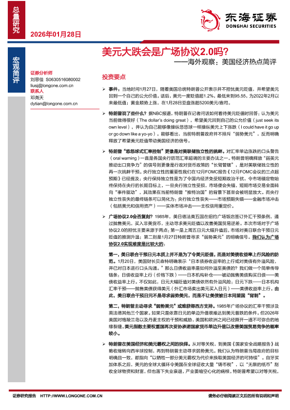 【东海证券】【202601】美元大跌会是广场协议2.0吗?-4页