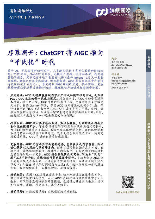 【浦银国际】【20230214】序幕揭开:ChatGPT将AIGC推向“平民化”时代-32页
