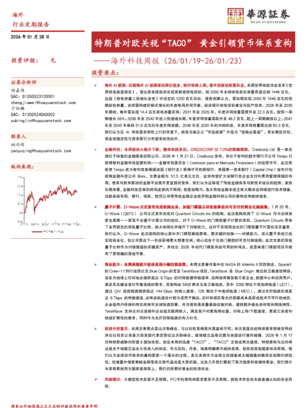 【华源证券】【202601】特朗普对欧关税“TACO”黄金引领货币体系重构——海外科技周报(26/01/19-26/01/23)-13页