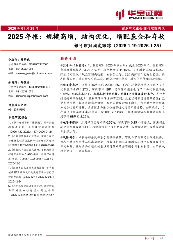 【华宝证券】【202601】银行理财周度跟踪:2025年报:规模高增,结构优化,增配基金和存款-7页