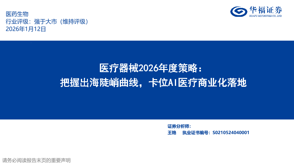 【华福证券】【2026】医疗器械2026年度策略:把握出海陡峭曲线,卡位AI医疗商业化落地-28页