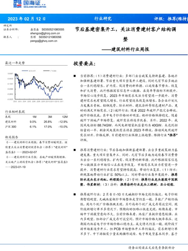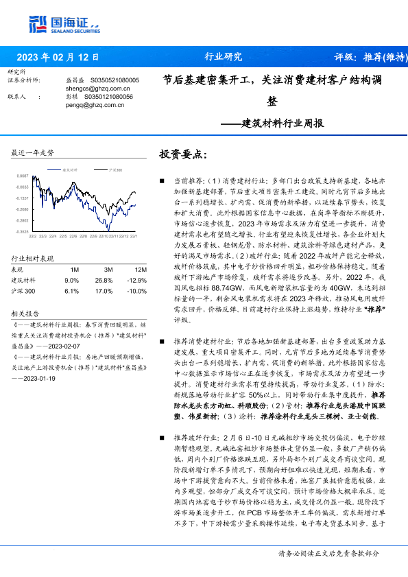 【国海证券】【20230212】建筑材料行业周报:节后基建密集开工,关注消费建材客户结构调整-22页