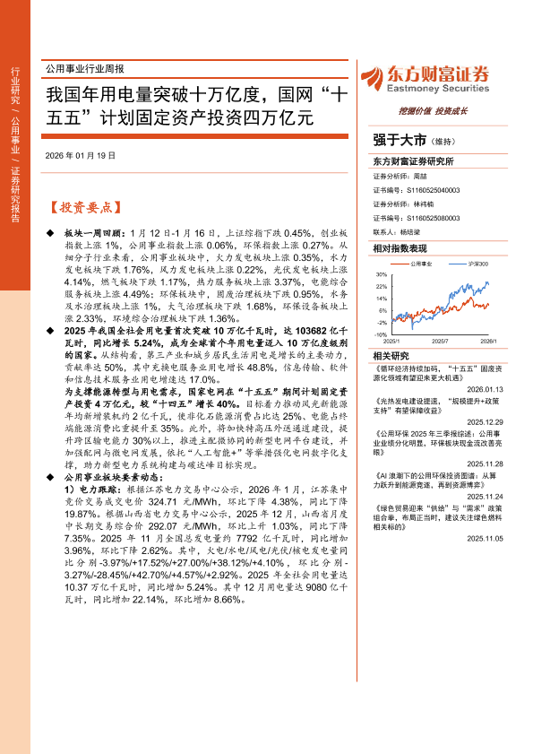 【东方财富证券】【202601】我国年用电量突破十万亿度,国网“十五五”计划固定资产投资四万亿元-16页