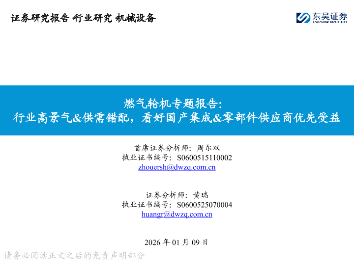 【东吴证券】【202601】燃气轮机专题报告:行业高景气&供需错配,看好国产集成&零部件供应商优先受益-26页